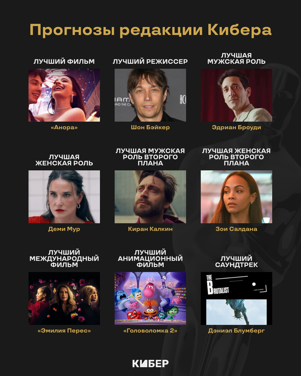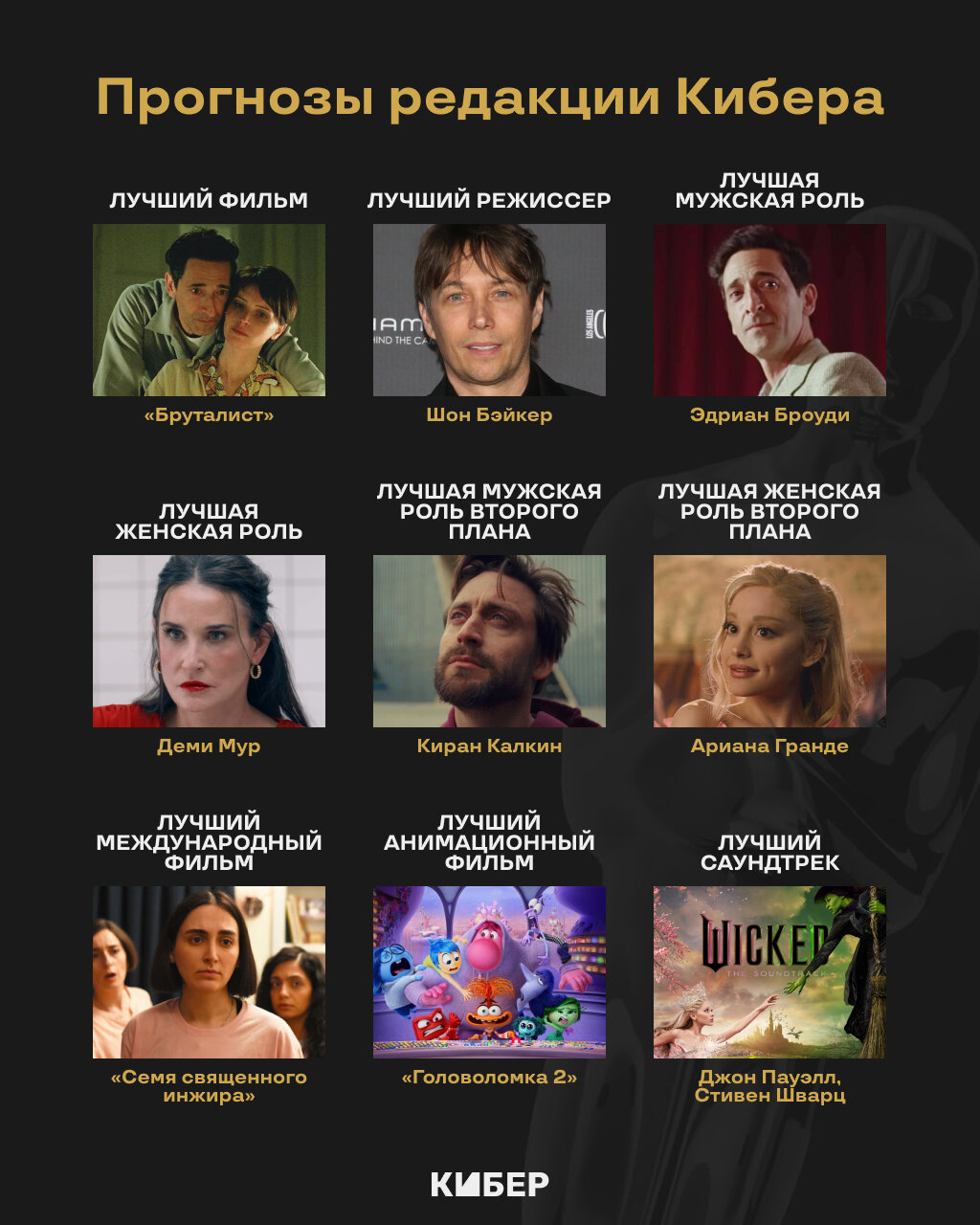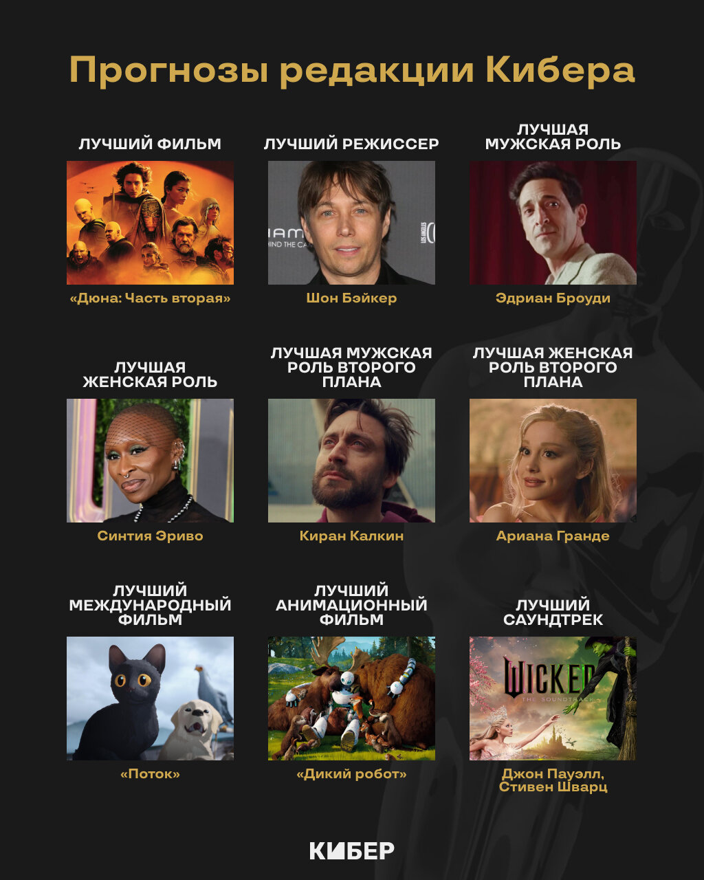 Кто победит на «Оскаре-2025»? Прогнозы редакции Кибера