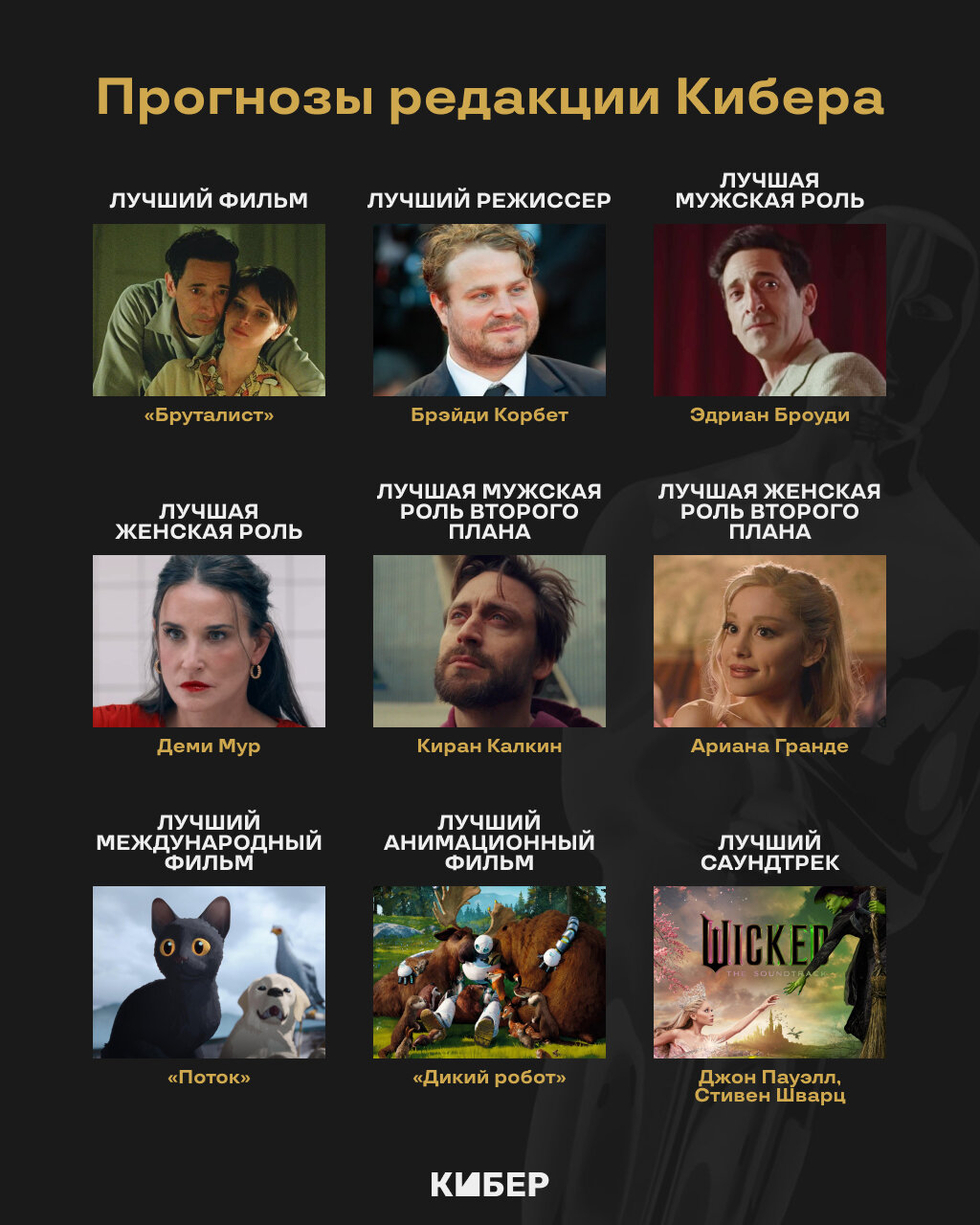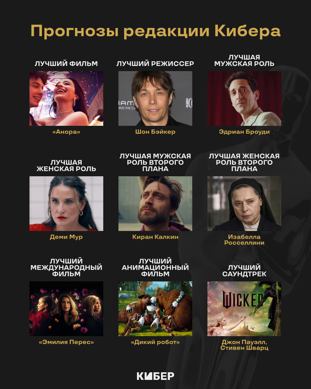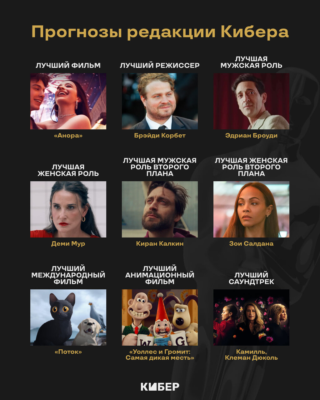 Кто победит на «Оскаре-2025»? Прогнозы редакции Кибера