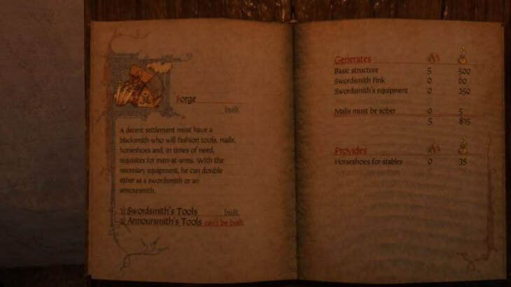 - Кузница – 700 грошей плюс 35 при наличии караульного дома/конюшни