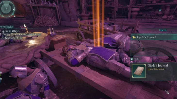 В мастерской вы найдете тела членов экспедиции Аэдира. Становится ясно: Оракул убил их, чтобы использовать их жизненную энергию для оживления статуи Эотаса. Не забудьте забрать дневник Гьеды с тела в центре комнаты, прежде чем вернуться к Оракулу.