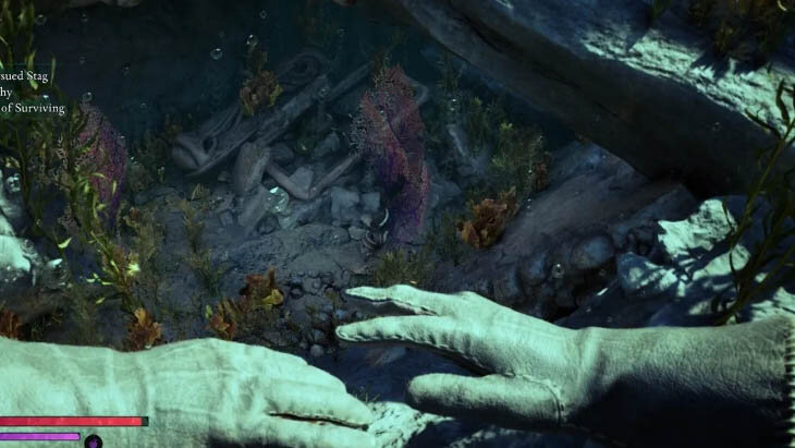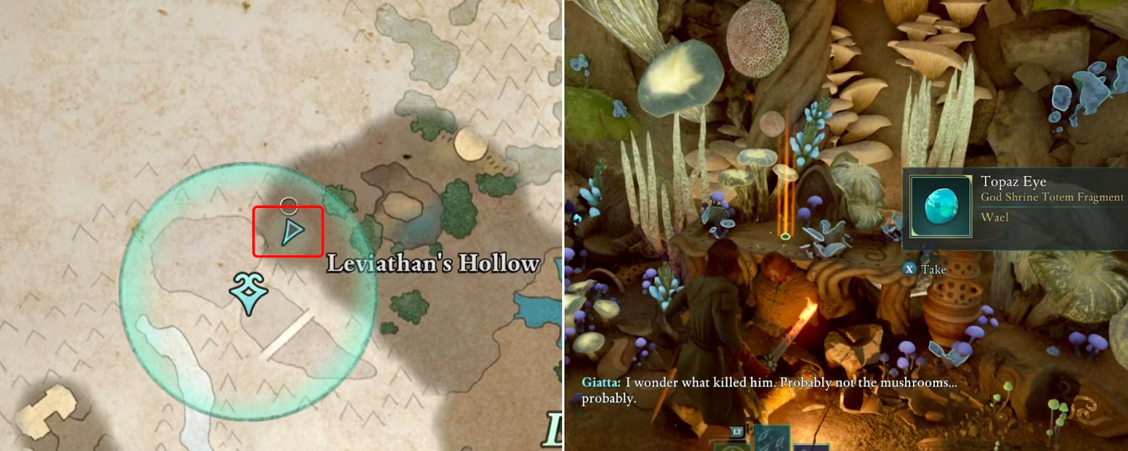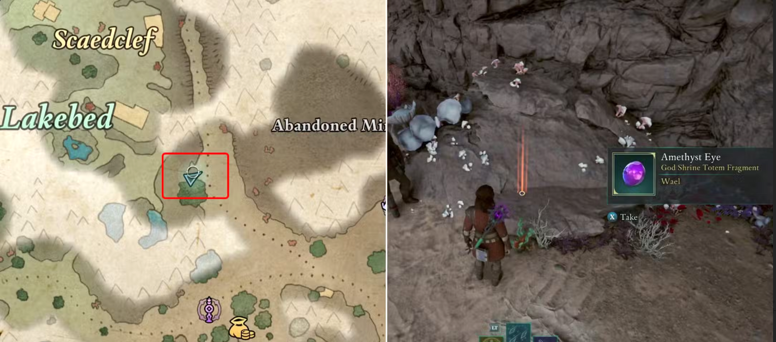 В юго-западной части Расколотого утеса находится древнее святилище Ваэля, в котором находится основание тотема Откровений. Чтобы найти его, придется спуститься по скалистому склону у океана. Двигайтесь вдоль южного края утеса, пока не заметите характерное розовое сияние, исходящее из пещерного входа. Это верный признак того, что вы на правильном пути.