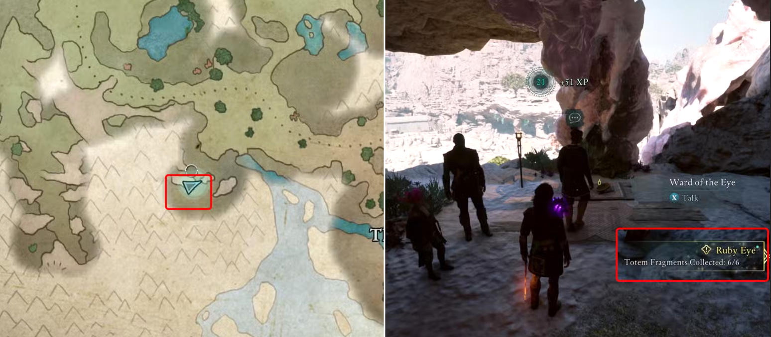 В восточной части Расколотого утеса находится высохшее озерное дно. Этот район скрывает один из важных фрагментов тотема. На востоке локации ищите вход в уединенную пещеру. Внутри вы наткнетесь на необычную картину – одинокую женщину среди старых захоронений, словно хранительницу этого скорбного места.