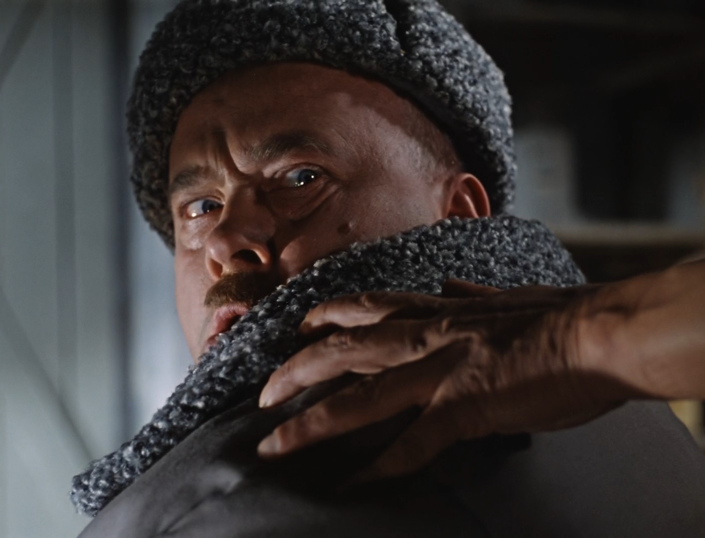 Федя в ярости бросается за Шуриком. Во время погони по стройке парень застревает в мазуте, но оставляет сапоги и сбегает. После нескольких неудачных попыток поймать напарника Федя садится в трактор. Шурик запускает в него цементом и крадет одежду во время душа.