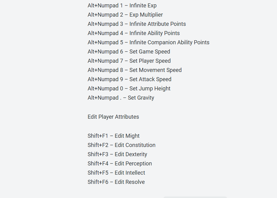 - Infinite Attribute Points – бесконечные очки атрибутов.