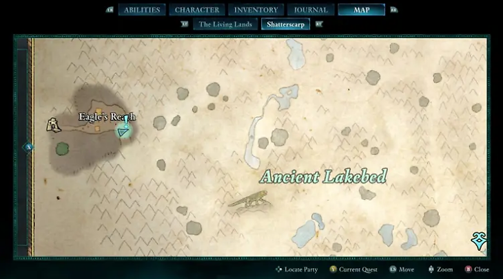 После активации квеста ваша задача — добраться до лагеря серных рудников. Следуйте по тропе, которая проходит между заброшенной шахтой и древним руслом озера на севере. Это приведет вас к горам, где вы сможете пересечь мост и продолжить путь.