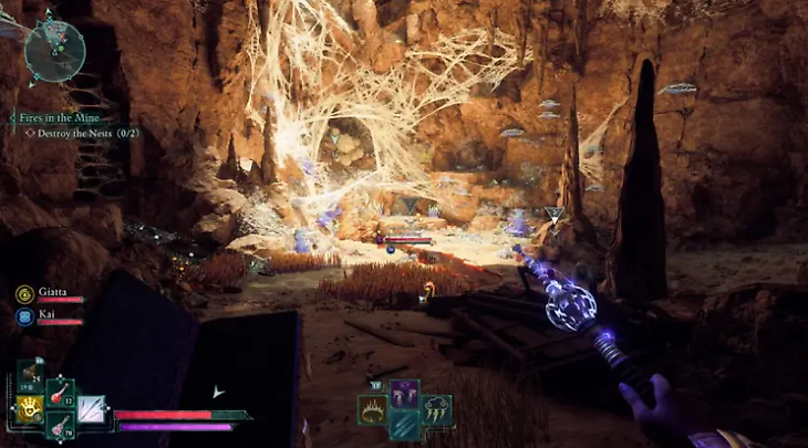 Войдите в «Серные копи» и начинайте исследовать территорию, пока не наткнетесь на первое гнездо. Здесь вам нужно будет сразиться с пауками, которые охраняют яйца. Убедитесь, что вы уничтожили всех врагов, а затем сожгите гигантские мешки с яйцами, чтобы предотвратить дальнейшее размножение пауков.