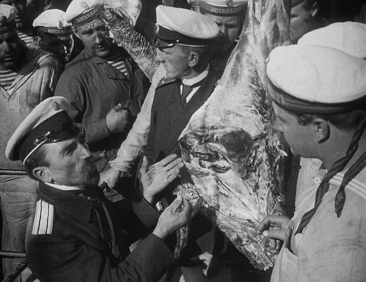 Матросы броненосца «Потемкин» обнаруживают, что им подали на обед испорченное мясо с червями. Это вызывает бурю возмущения среди моряков, и начинается бунт. Григорий Вакуленчук, один из самых решительных и опытных матросов, становится одним из лидеров восстания. Вместе с другими моряками он требует, чтобы им дали нормальную еду. В ответ на протесты корабельный врач уверяет, что мясо было качественным и безопасным. Но моряки не верят ему, и недовольство растет. Офицеры решают подавить бунт силой, угрожая расстрелом всем, кто откажется есть испорченную пищу. Некоторые матросы поддаются давлению и начинают поедать мясо, но несколько человек остаются непоколебимыми. Их собирают на палубе, обвиняют в неподчинении и приговаривают к расстрелу, что только усиливает напряжение среди экипажа.