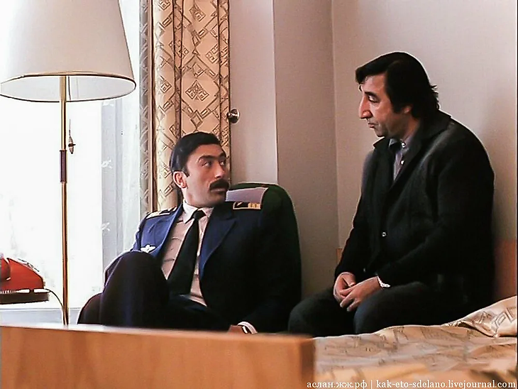 В гостинице «Россия» двухместный номер. Соседом оказывается армянин — водитель Рубен Вартанович (Рубик) Хачикян (Фрунзик Мкртчян). Происходит знакомство. Валико пытается дозвониться до Ларисы Ивановны, но Рубик все время прерывает его. Армянин весь на эмоциях, простого шофера без проблем заселили в престижную гостиницу, персонал обращается подчеркнуто вежливо. Валико договаривается встретиться с Ларисой вечером в семь часов в вестибюле гостиницы и тут же кричит на соседа, который не дает нормально поговорить. Происходит ссора.