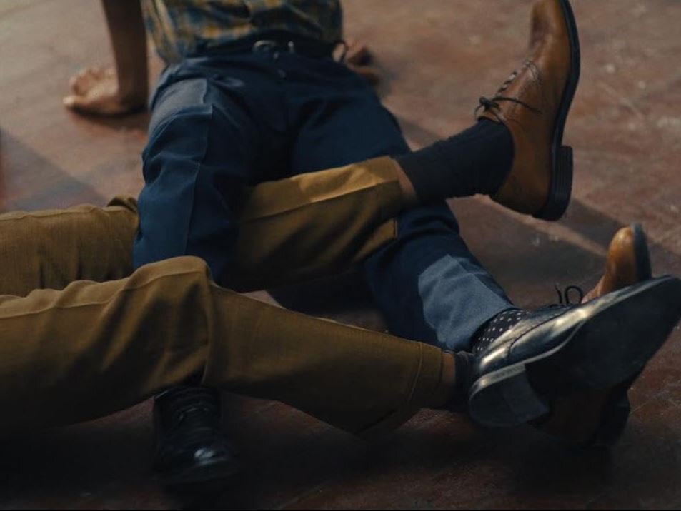 Оператор Джомо Фрэй превращает каждую сцену в произведение искусства. Фильм наполнен захватывающими визуальными метафорами: две женские ноги, движущиеся идеально в унисон у прилавка магазина, страницы «Гордости и предубеждения», освещенные летним светом. Эти детали кажутся живыми, осязаемыми, но именно здесь прячется контраст – за красотой скрывается насилие. Камера никогда не показывает жестокость напрямую, но следы страха и боли повсюду: темные пятна на стенах, силуэты и напряженные взгляды.