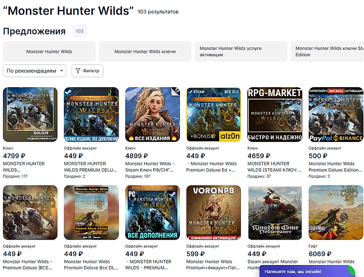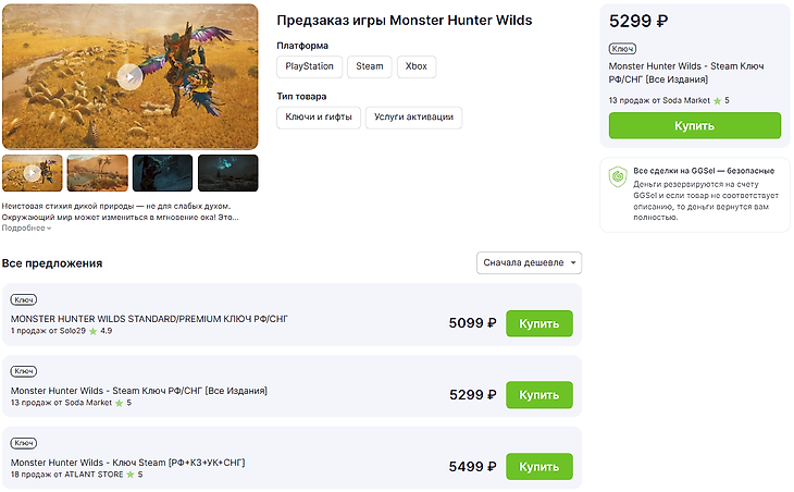 - найдите там Monster Hunter Wilds и выберите понравившееся предложение;