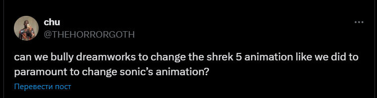 «Можем ли мы наныть новую анимацию для Шрека, как Paramount поменяла для Соника?».