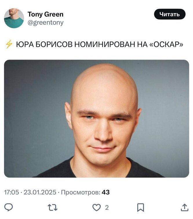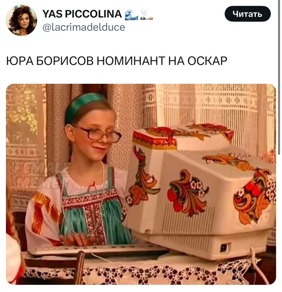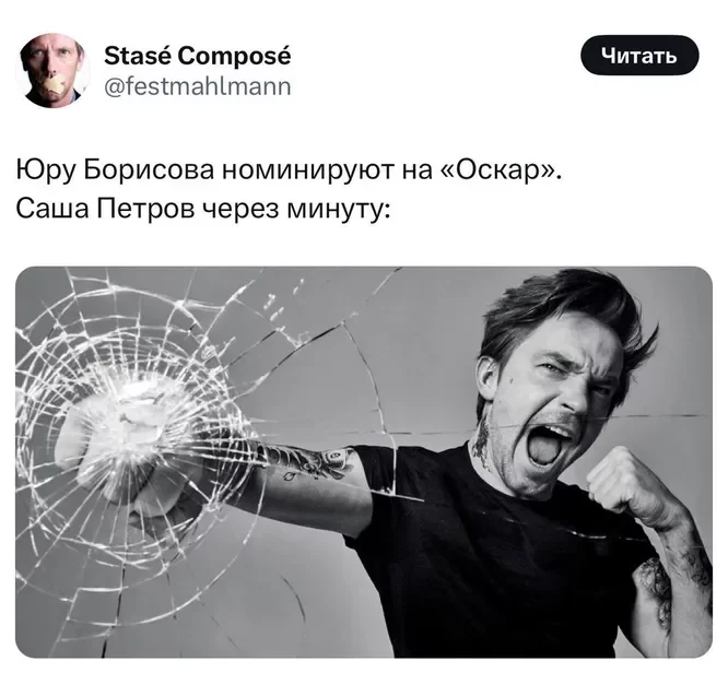 Номинант на «Оскар» за второстепенную роль в «Аноре» Юра Борисов всем полюбился благодаря смешному поведению. Он как Джим Керри в лучшем смысле этого слова – когда внешность и поведение сами по себе создают запоминающийся мем.