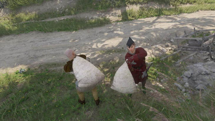 Поблизости от места встречи с Карелом, вдоль правой стороны основного тракта, находится тот самый мешок, который странник просит доставить в его лагерь.