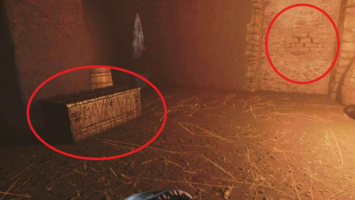 Затем пройдите через дверь справа. В углу найдете разрушенную стену, похожую на ту из предыдущего задания. Откройте ее. В этой комнате также есть сундук с очень сложным замком – если сможете открыть, возьмите оттуда статуэтку Святой Магдалены. Старый ржавый меч лежит в той же кладке, где и две карты сокровищ. После открытия стены осмотрите место, откуда были убраны кирпичи, и заберите все три предмета.