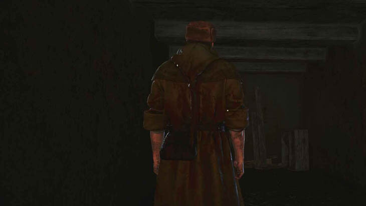 Взломайте замок на двери. Если появится Йорг для проверки, можно быстро отступить незамеченным. Если он застынет у двери лицом к стене, его можно оглушить для безопасности. Разобравшись с шахтерами, откройте сундук слева от входа и заберите окровавленное свадебное платье.