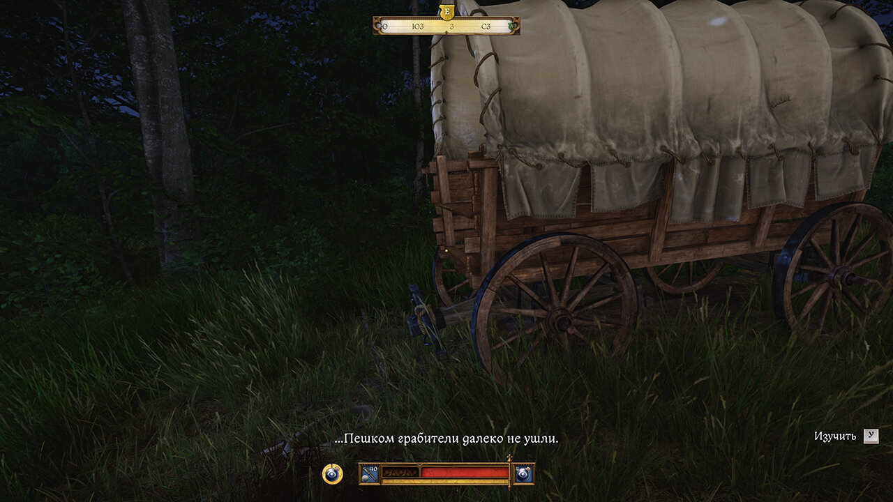 Идите дальше в лес, пока не увидите большую белую повозку. Изучите ее.
