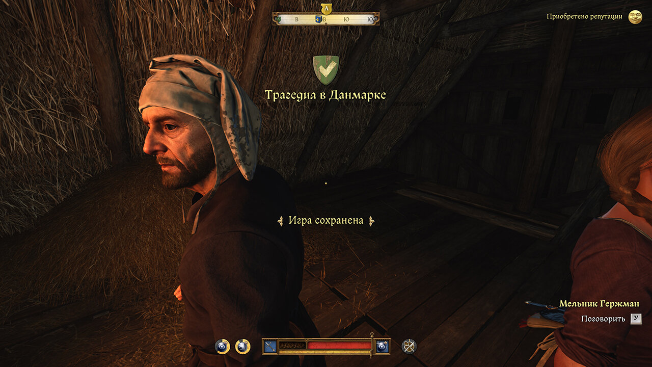 И, если вы развернетесь от трупа, то увидите, где засели бандиты. За кустом не видно сарай, где можно взять небольшое задание, которое легко пропустить – «Трагедия в Данмарке». Разбойники связали мельника и его семью, нужно поговорить с ними и сказать, чтобы сидели тихо и не пытались бежать. Если вы скажете им бежать, то их заметят бандиты, и, скорее всего, убьют, а ваш план со скрытностью провалится.