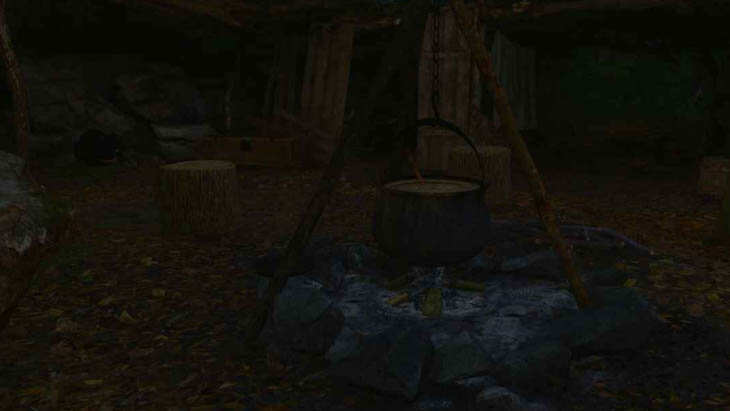 - Осторожно проберитесь к котлу для приготовления пищи в центре лагеря.