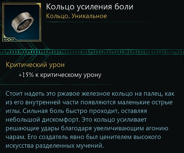 - Кольцо усиления боли – увеличивает критический урон.