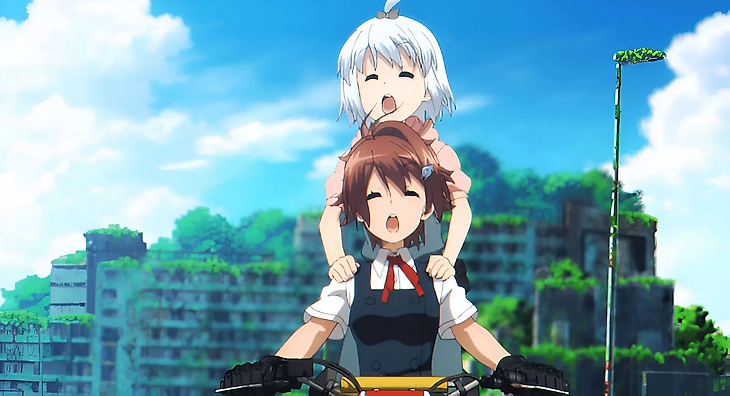 Авторы предлагают зрителям окунуться в атмосферу постапокалиптической Японии. Неизвестно, какая на этот раз катастрофа произошла на Земле, но судя по тому, что все вокруг заросло травой, деревьями и кустарниками, апокалипсис случился давно. В этом одиноком мире две подружки Юко и Аири путешествуют на своем мотоцикле, осматривая все вокруг, что ранее можно было назвать достопримечательностями. В этом мире девушки совершенно одни, что нисколько их не страшит. Юко и Аири ссорятся и мирятся, попадают в различные передряги, добывают себе еду и становятся участницами различных приключений.