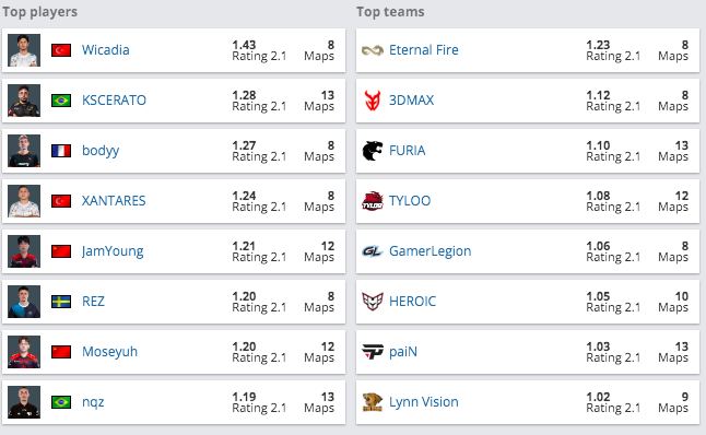 Со счётом 3:1 во вторую стадию прошли Eternal Fire, 3DMAX и MIBR. К французскому ростеру месяц назад присоединился bodyy, до этого выступавший за fnatic. Изменения уже дают свои плоды: француз стал третьим лучшим игроком первого этапа, уступив лишь KSERATO и Wicadia.