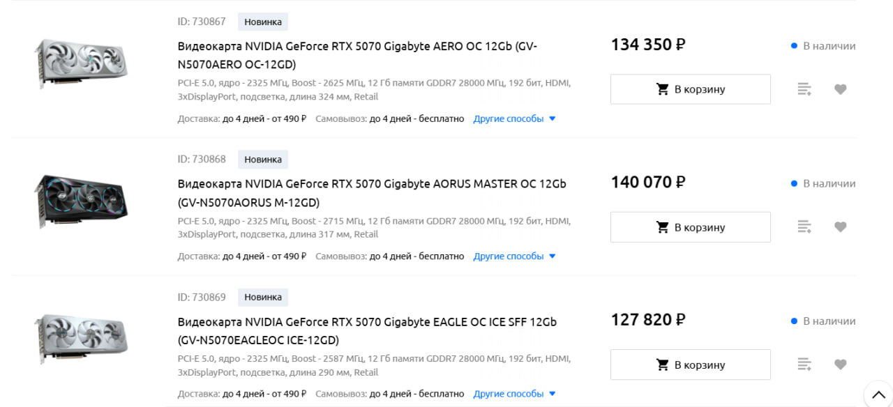 Стоимость RTX 5070 начинается от 100 тысяч рублей за некоторые модели от MSI. На момент написания текста на российских площадках цены на видеокарту достигают 140 тысяч рублей, вплотную приближаясь к стоимости RTX 5070 Ti.
