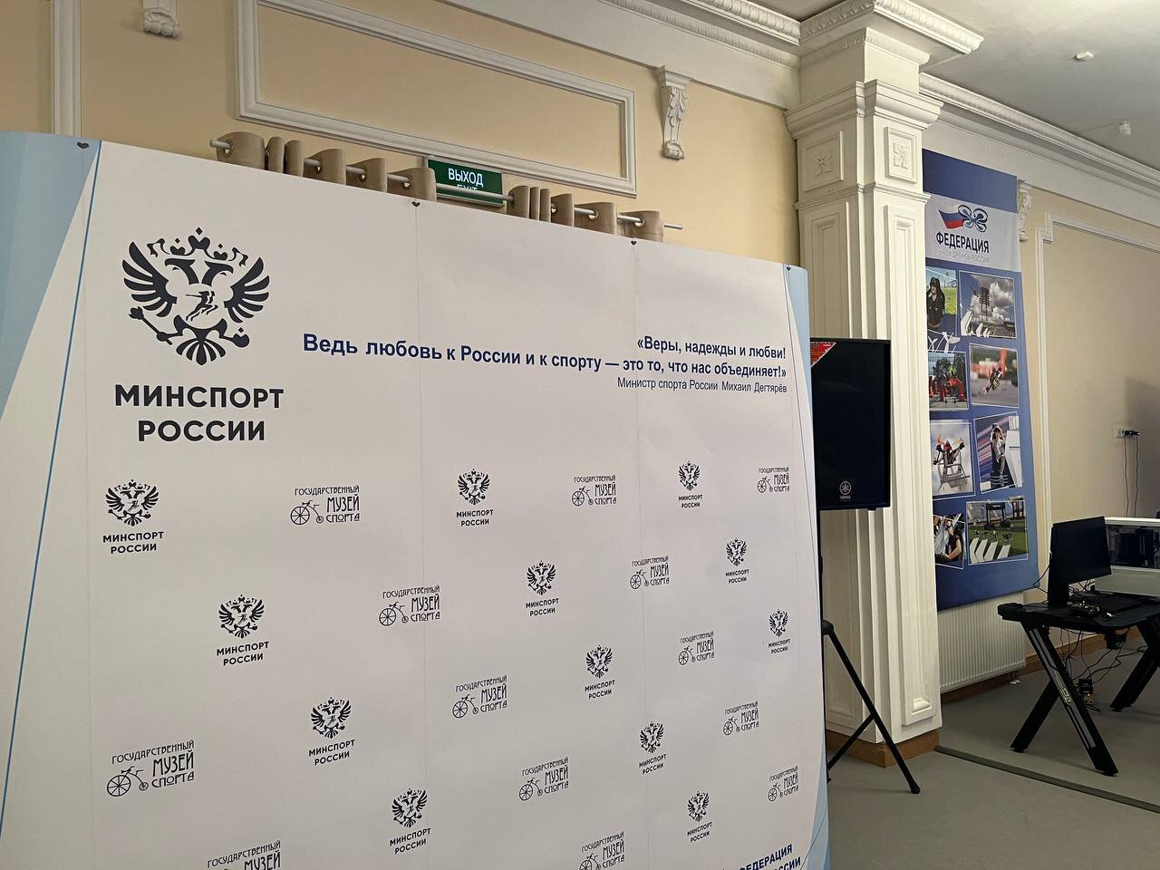 Перед выходом узнаю, что внеплановая уборка в зале проходит потому, что после меня на выставку спустится «министр». Спустится буквально. Выставка находится в одном здании с Министерством спорта России.