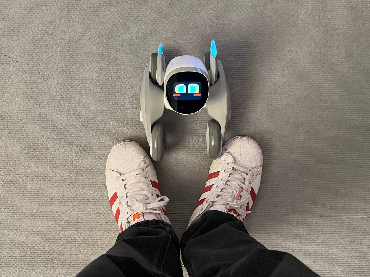 На следующем стенде со спортивным программированием есть роботы, которых, по словам Андрея, и нужно программировать на соревнованиях. Даже с ними можно повзаимодействовать. Получается крайне умилительно.