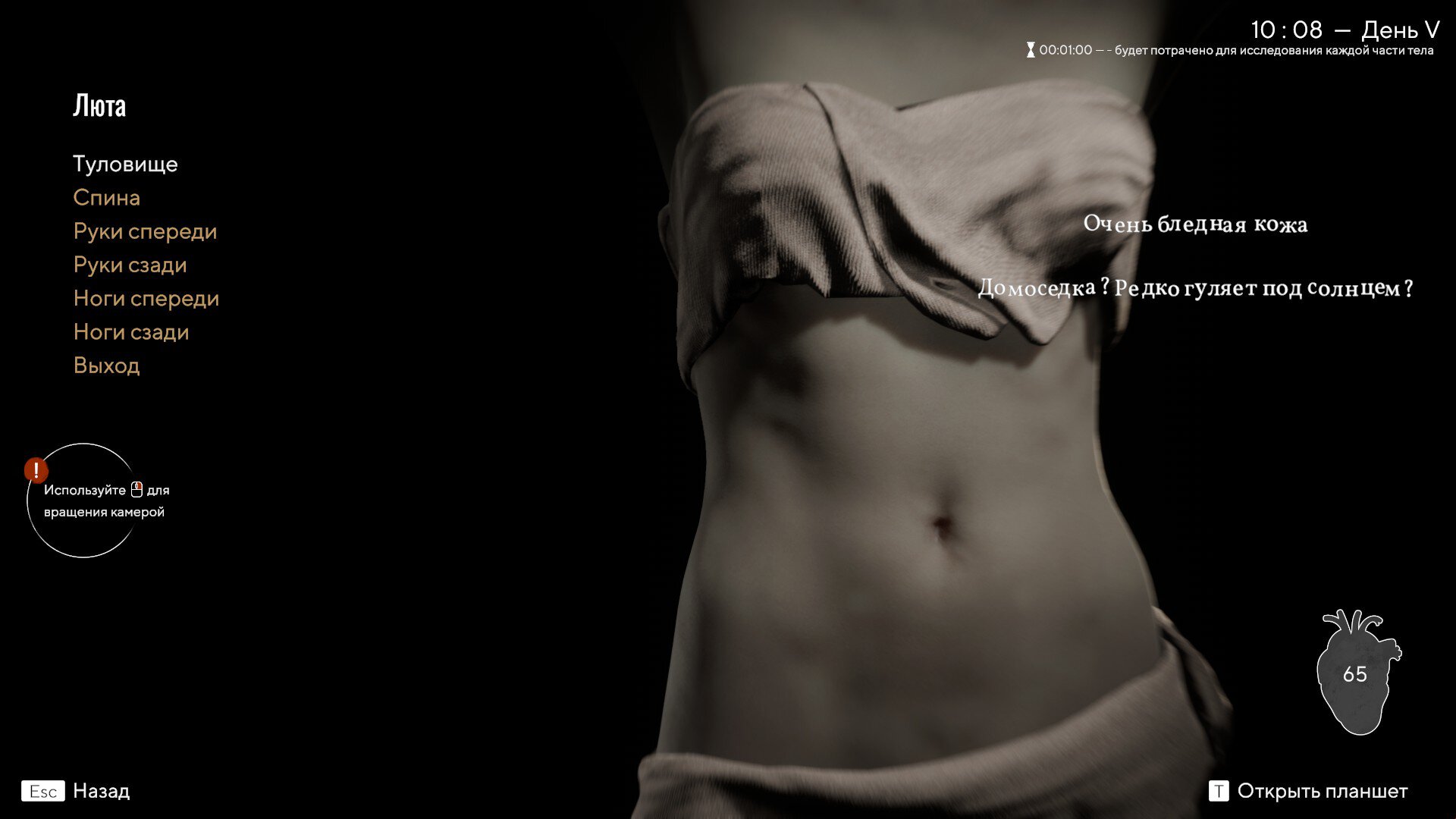 Важно, что ни одному слову ни одного персонажа нельзя верить. Взять пациента из начала демо: его болезнь каким-то чудом защищает от чудовищной песчанки, но в диалоге мужик храбрится и отрицает проблемы со здоровьем. Почему его кожа пожелтела? Это проблемы с печенью из-за алкоголя или дело в работе с красками? Нужно выяснить.