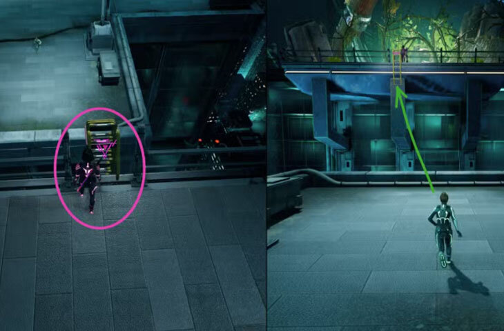 - После падения и разрушения кабинки Мио окажется рядом с историей. Затем нужно активировать лестницу, чтобы Зои смогла присоединиться к напарнику.