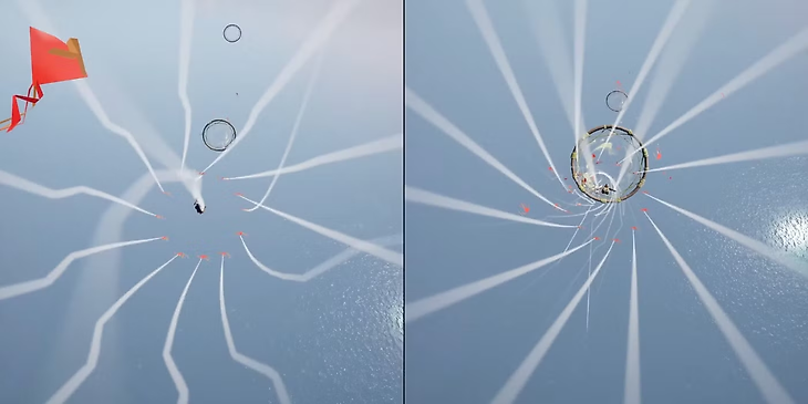 - Задача: между Мио и Зои предстоит соревнование на скорость, где нужно прокатиться на зиплайне и пролететь через кольца в воздухе, заполненном воздушными змеями.