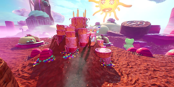 - Где находится: седьмая часть Treasure Temple (Храм сокровищ) пятой основной главы Rise of the Dragon Realm. В начале основной миссии предстоит двигаться по тропинке с розовыми кристаллами. Сверните налево от основного пути, увидите плавающего мармеладного мишку, открывающего вход в задание.