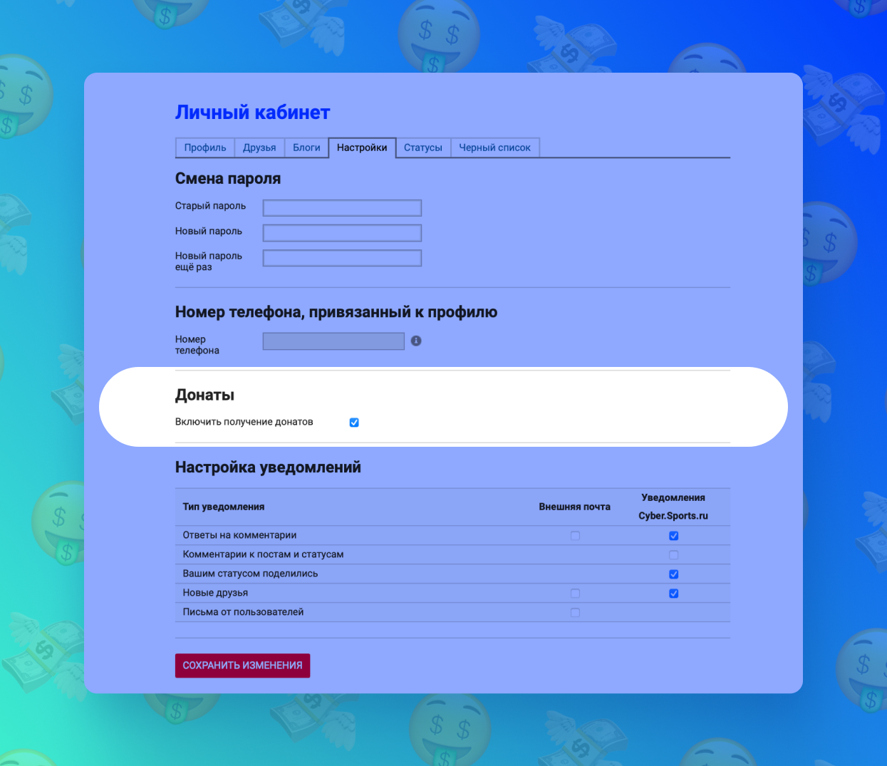 - Зайдите в настройки профиля → «донаты» → поставьте галочку.