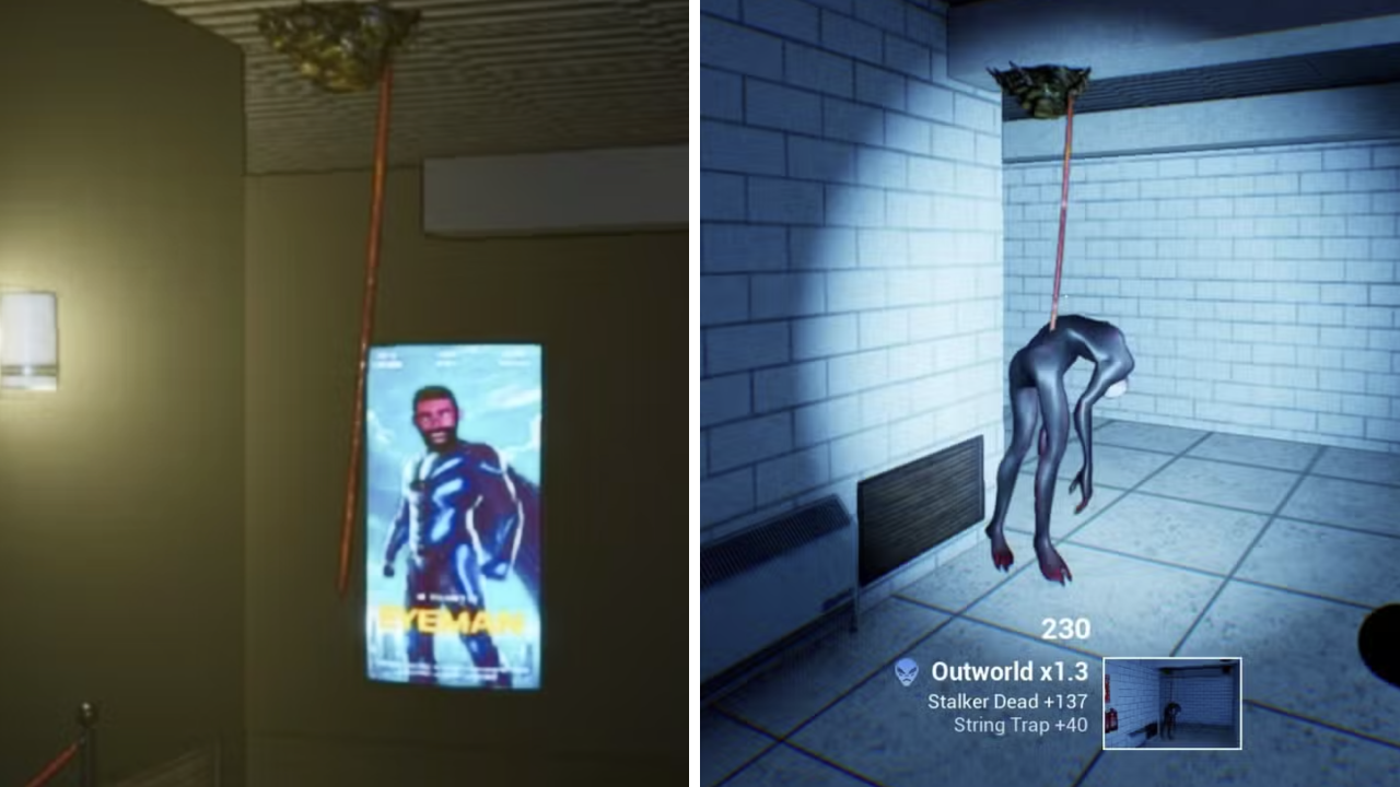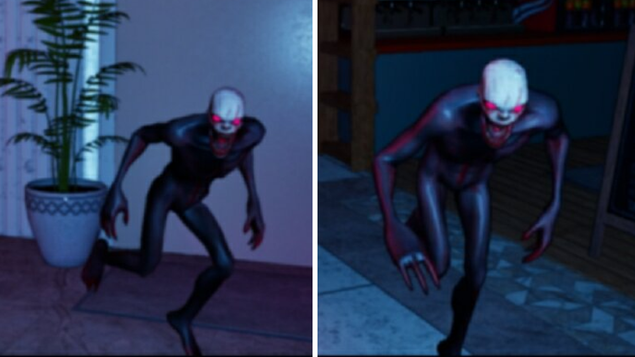Сталкер с ярко-красными глазами выглядит гораздо страшнее, чем есть на самом деле. Он прячется в самых темных, укромных зонах и совершает очень быстрые перебежки между комнатами. Поймать его в объектив бывает сложно, но в команде это сделать проще.