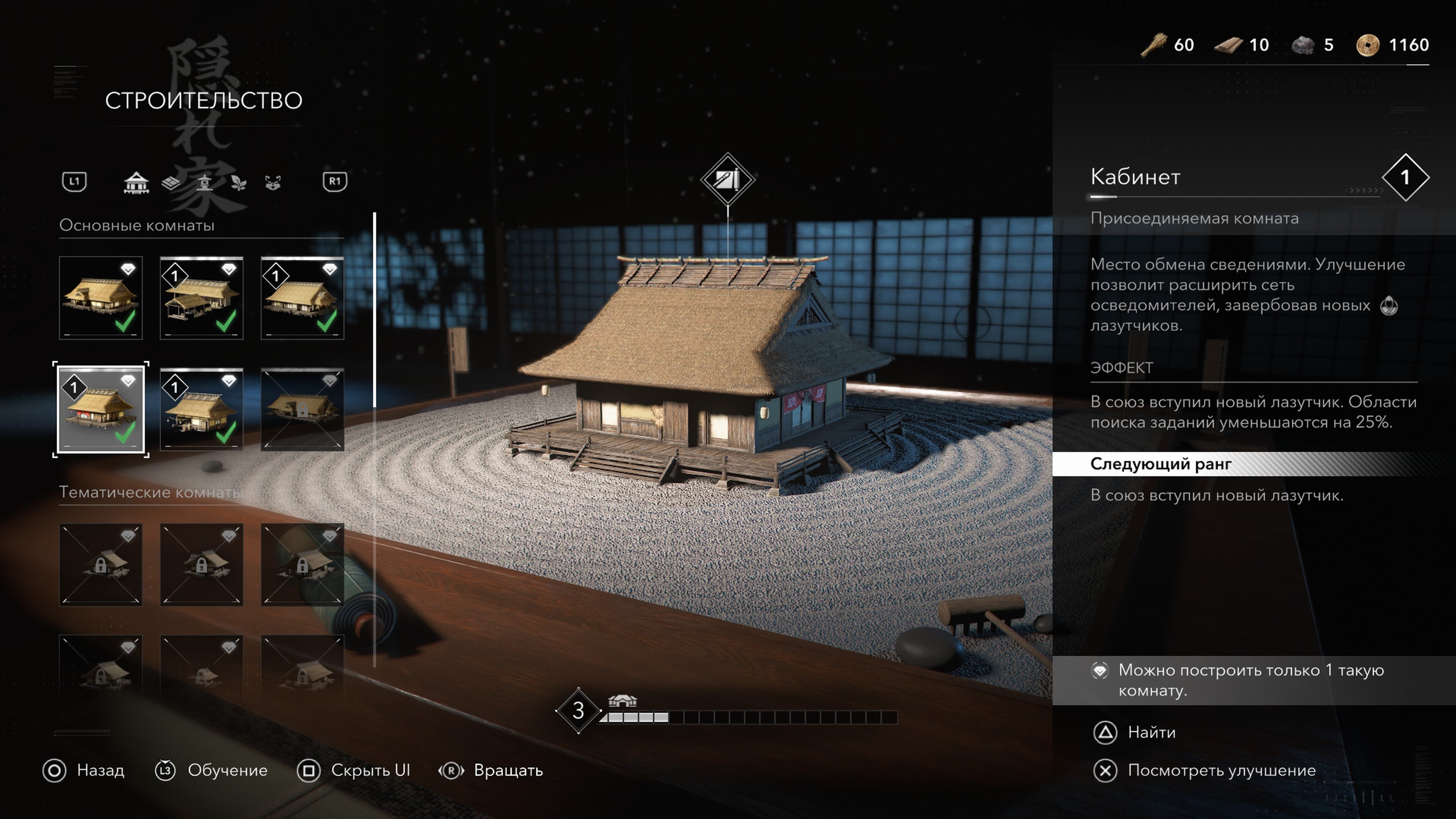 - Постройте в убежище нандо. Здание снизит стоимость перезагрузки шпионов в какурэге на 30%.