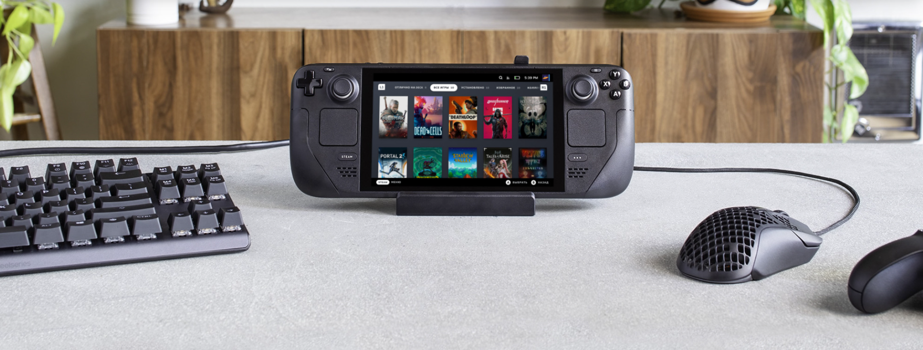 Технически в качестве контроллера для игр на телевизоре можно использовать Steam Deck. Однако благодаря док-станции доступны и классические методы управления – к устройству также подключаются геймпады, клавиатуры и мышки.