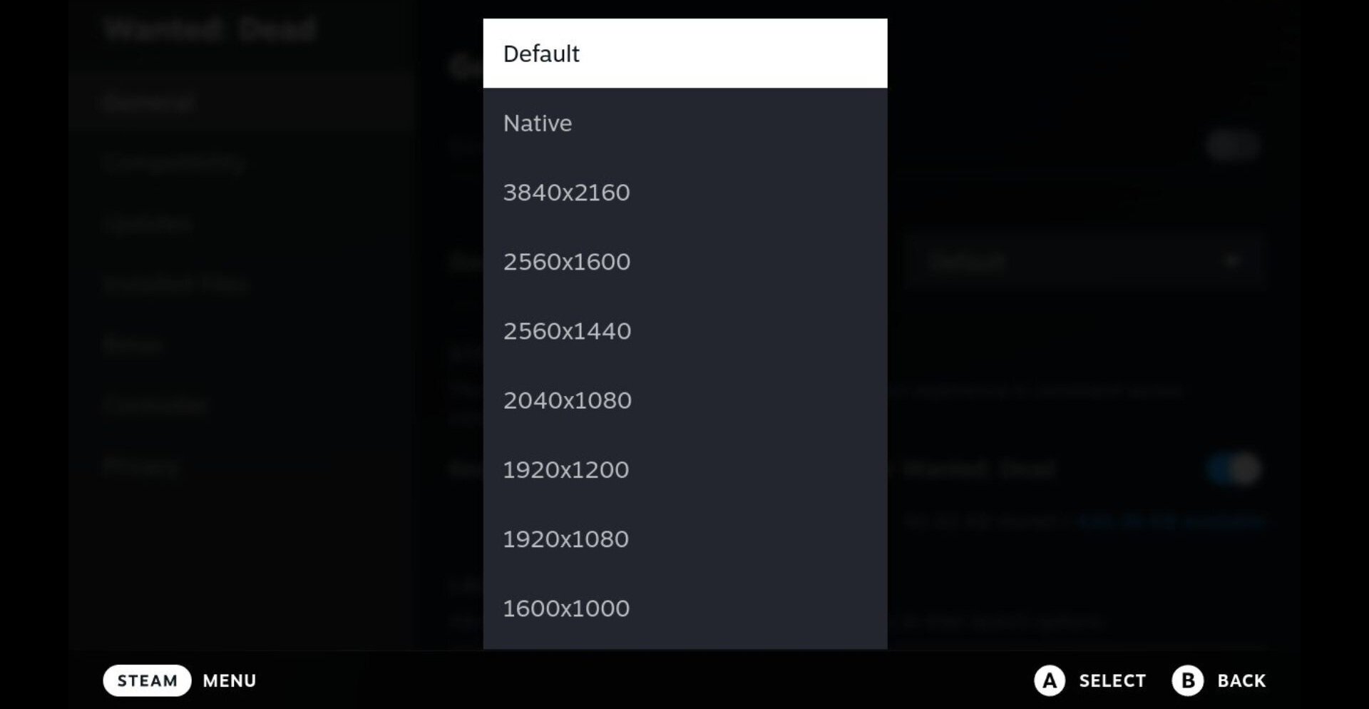 Здесь можно выбрать разрешение по умолчанию Steam Deck, под телевизор/монитор или другой вариант по своему выбору.