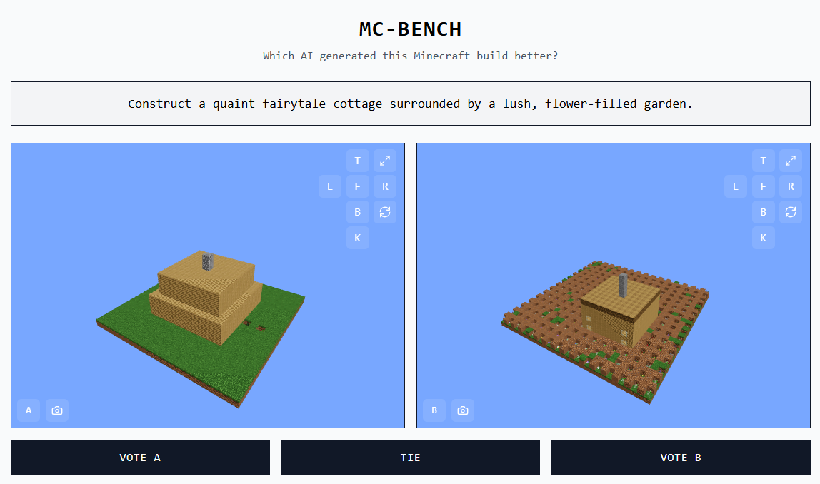 Сайт MC-Bench – тест на программирование нейросетей: модели ИИ создают код, который превращается в заданные постройки. Затем пользователи оценивают результат и голосуют за лучший вариант.