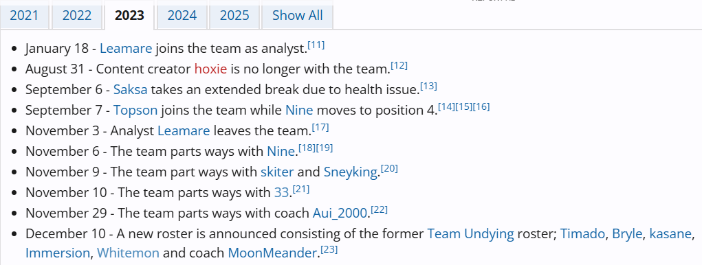 У команды было взлеты и падения - в целом игру этого состава можно назвать не особо стабильной. Однако, команде удалось победить на 2 турнирах тир-1 уровня: Elite League Season 1 и Clavision: Snow Ruyi, а также выиграть Игры Будущего в Казани. Однако, на главных турнирах года, команда не отметилась высокими результатами - топ 7-8 на Рияде и топ 5-6 на Инте. По слухам, ребята в команде получали очень большую зарплату, что конечно не может не сказаться на финансовом состоянии организации, однако все-таки состав мог достойно себя показывать на тир-1 сцене, и даже выигрывать турниры. Выиграют ли они что-то еще в будущем? Полезные ли это сейчас активы? Сложно сказать, ситуация в Китае явно сложилась так, что молодых талантов уже не появляется - соответственно качественной замены игроку обычно не найти.