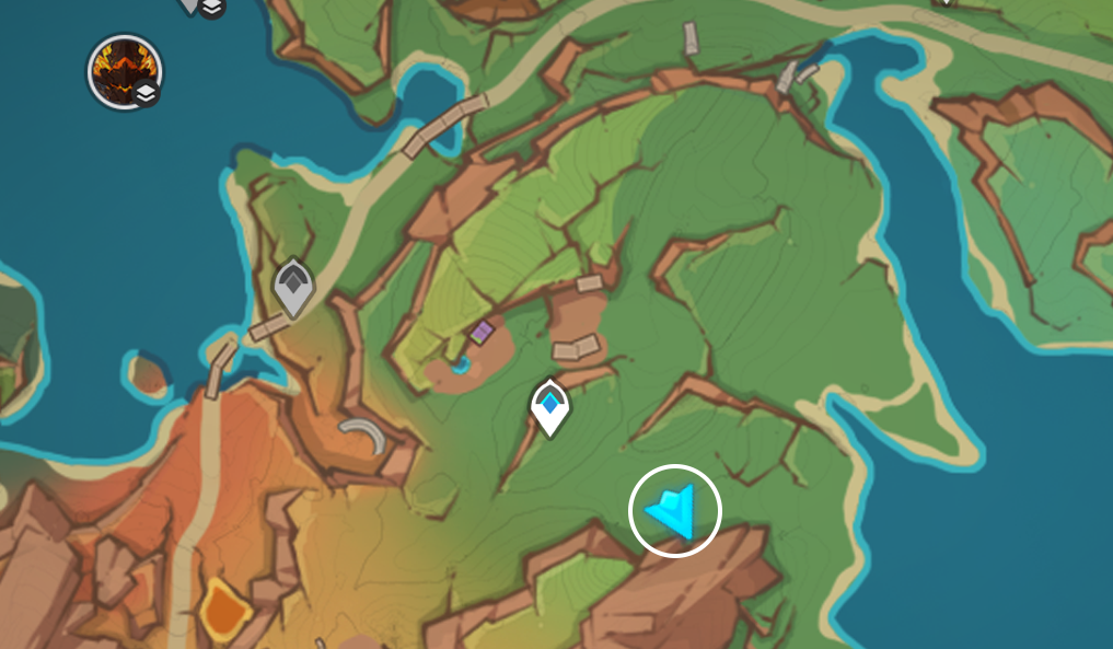 Следующий первый детеныш – на юго-востоке от ближайшего телепорта. Разбираемся с хиличурлом, который его преследует.