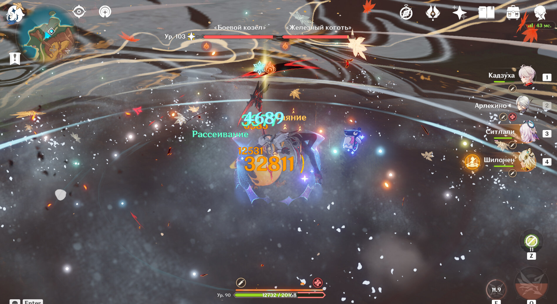 Начиная сражение, первым делом активируйте защитные щиты и запустите привычную боевую ротацию с элементальными реакциями. На начальном этапе противники используют только базовые атаки, что позволяет безопасно подготовиться к более сложным фазам боя.