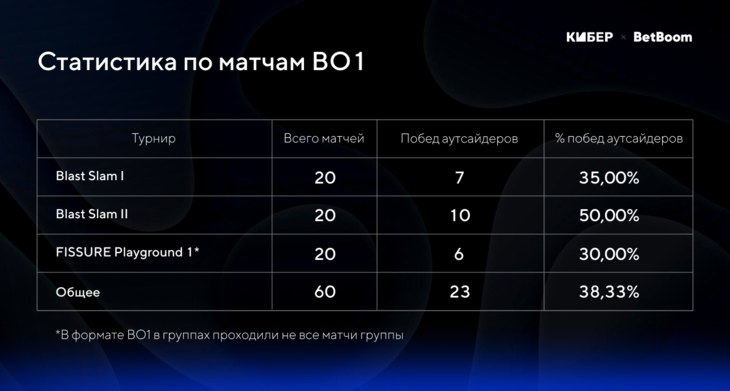 Если посмотреть пять последних турниров, где в группе применялся Bo3, и сравнить с результатами в плей-офф, то можно заметить, что с ростом ценности матчей борьба между командами ожесточается.