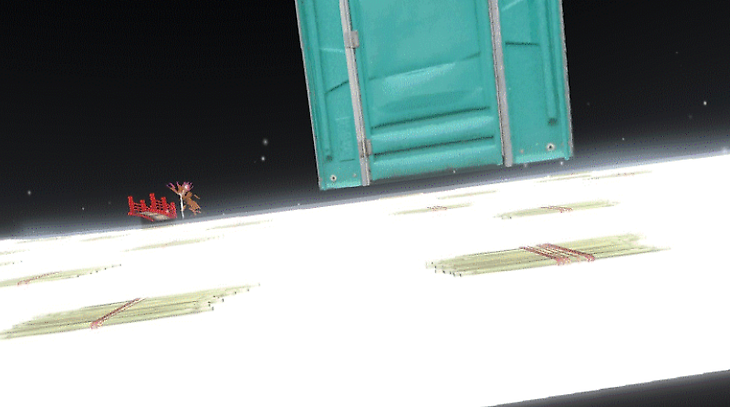 В огромной передвижной туалетной комнате пройдите по бамбуковым плотам, стараясь не упасть. Если вам не удастся это сделать, вы окажетесь в другом месте, и для повторной попытки вам потребуется новое сохранение.