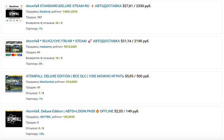 Если вы хотите приобрести игру, то сделать это через Steam не получится. Однако можно воспользоваться альтернативными площадками, вроде Fun.Pay или Plati.Market. Для приобретения перейдите на один из этих сайтов, в поисковой строке введите название игры и выберете одно из доступных предложений, ориентируясь на стоимость и отзывы продавца.
