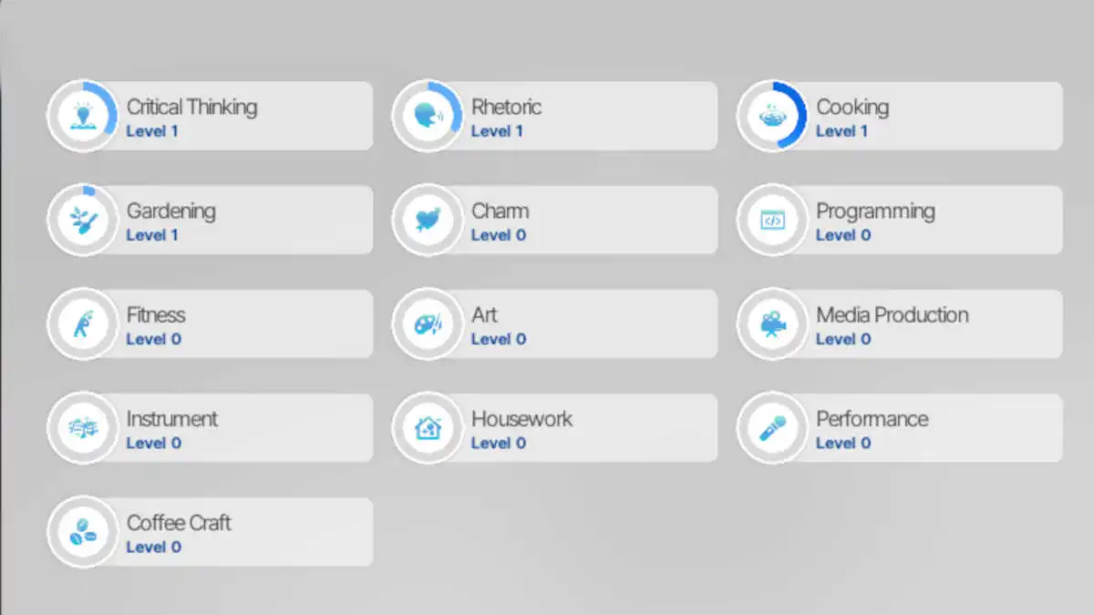 С выходом inZOI для персонажей были доступны тринадцать навыков: каждый из них отличается своей уникальностью, а также своим применением. В таблице ниже мы привели список доступных навыков и методов их улучшения.