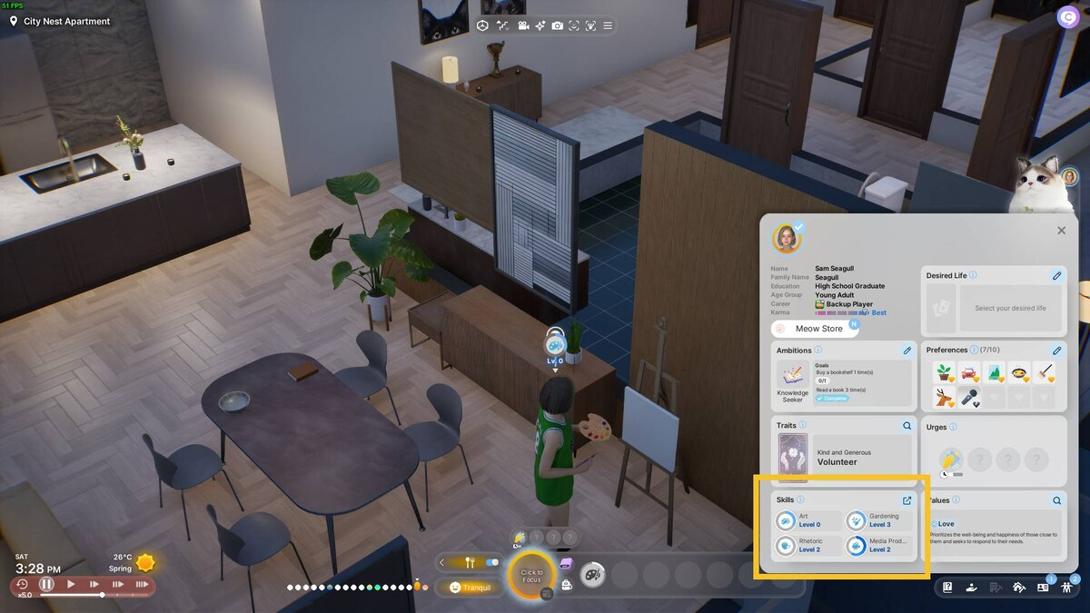 В недавно вышедшей inZOI игроки смогли ознакомиться с обширным количеством навыков, характеризующими различные виды деятельностей персонажей, а также их возможностей, большинство из которых персонажи усвоят самостоятельно, в процессе игры. Каждое из умений приносит пользу и расширяет доступные возможности, причем, с ростом уровня его эффективность заметно увеличивается.