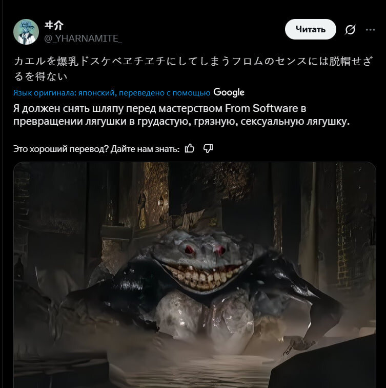 Геймеры перевозбудились при виде новой лягушки из Duskbloods. Да, от лягушки!