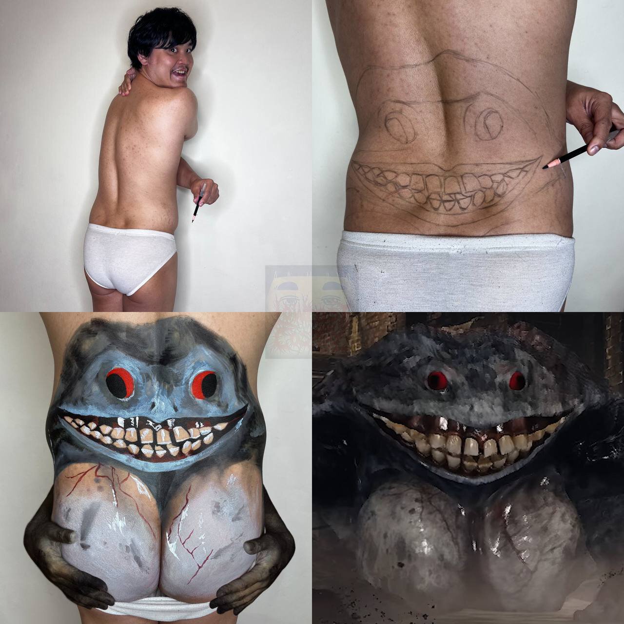А популярный блогер Lowcost Cosplay сделал косплей в своем стиле – жена помогла ему нарисовать лягушку на теле.