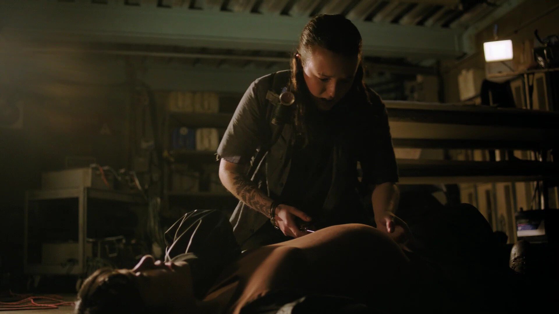 В сериале героини убегали от орды зараженных. Один догнал Дину и намеревался укусить, но Элли подставила под зубы собственную руку. Когда Дина со слезами навела на подругу пистолет, та раскрыла карты.