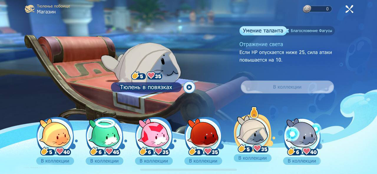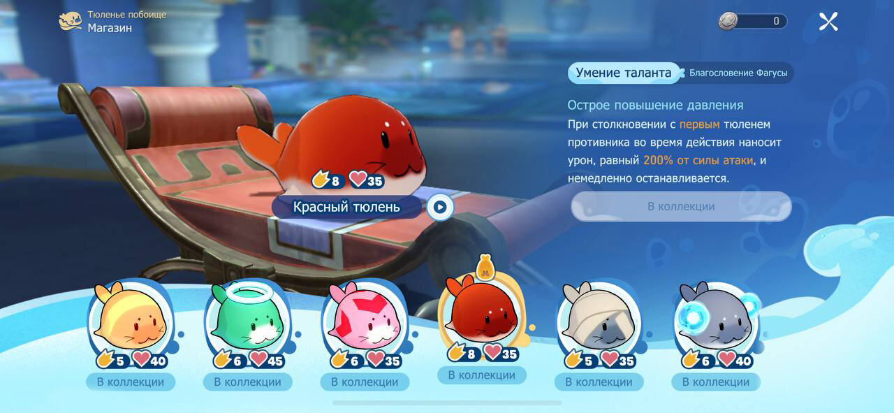 За победу дают валюту, которую можно потратить в магазине тюленей. Обычно после победы над соперником вы можете приобрести его тюленя. В определенный момент игры монет будет не хватать на всех, поэтому покупайте вдумчиво, читая пассивки. А если вы не до конца поняли, как работают умения тюленей, то пролистайте ниже до списка лучших тюленей.